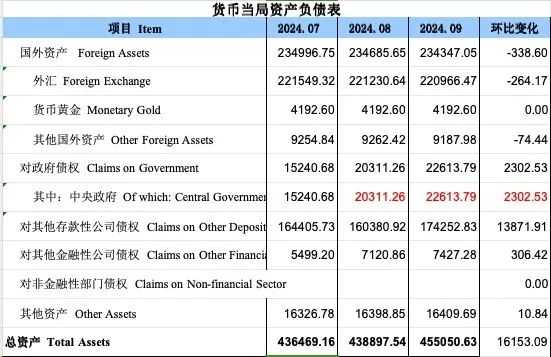 近期,央行国债买卖操作成为市场瞩目的焦点,央行资产负债表中的相关数据为此提供了深入的洞察。据中国人民银行最新公布的货币当局资产负债表显示,截至9月末,央行对中央政府的债权余额攀升至2.26万亿元,较8月末激增2302亿元,这一增长趋势在8月的基础上再度延续。