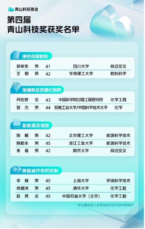 第四届青山科技奖揭晓:10位青年科学家获奖,绿色低碳领域受瞩目