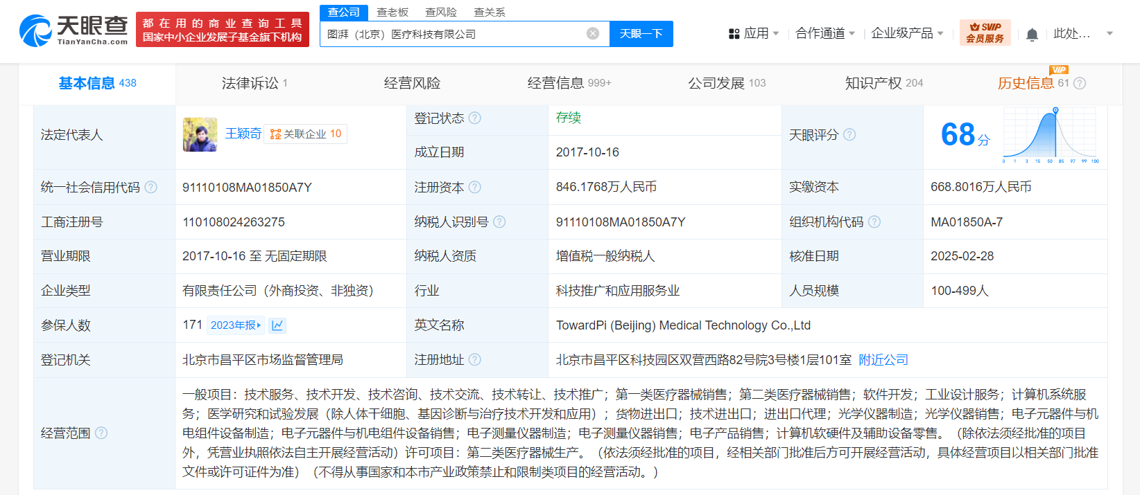图湃医疗工商变更,新增股东北京机器人产业基金