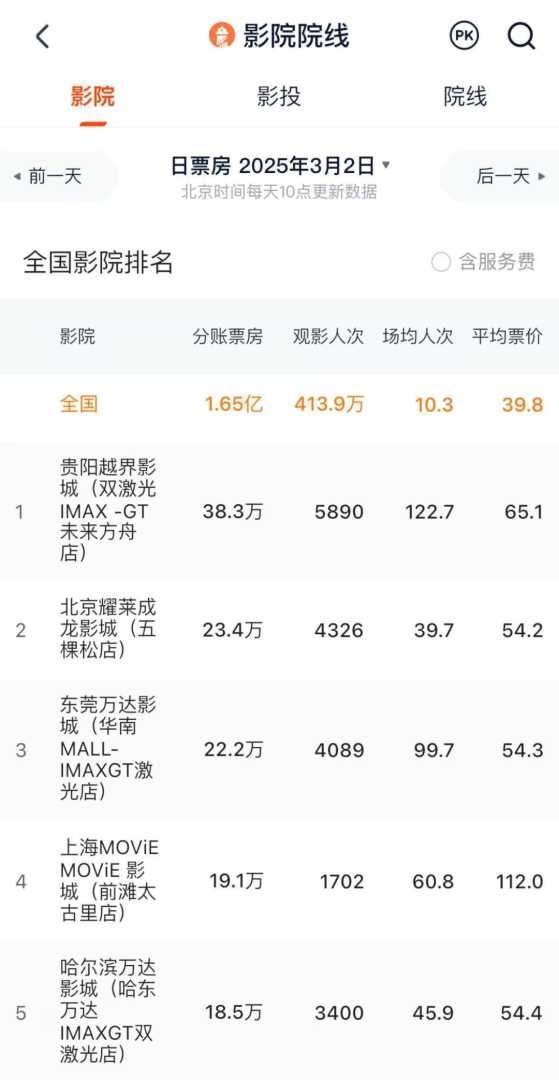 《哪吒之魔童闹海》(以下简称《哪吒2》)的票房传奇持续发酵,令人惊讶的是,一家曾濒临倒闭的影院成为了最大黑马。凭借“亚洲第一巨幕”,贵阳越界影城一跃成为新晋网红,单日票房连续多日领跑全国影院。
