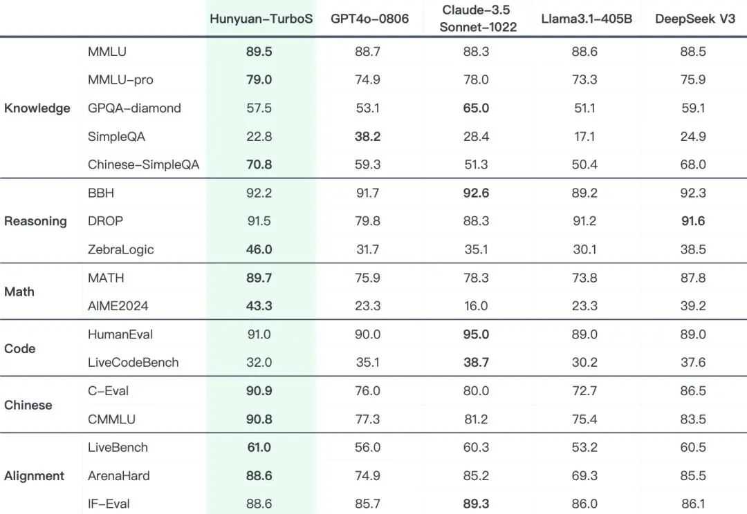 据测评显示,在业界通用的多个公开Benchmark上,腾讯混元Turbo S在知识、数学、推理等多个领域展现出对标DeepSeek-V3、GPT-4o、Claude3.5等业界领先模型的效果。这标志着腾讯在AI大模型领域取得了重大突破。