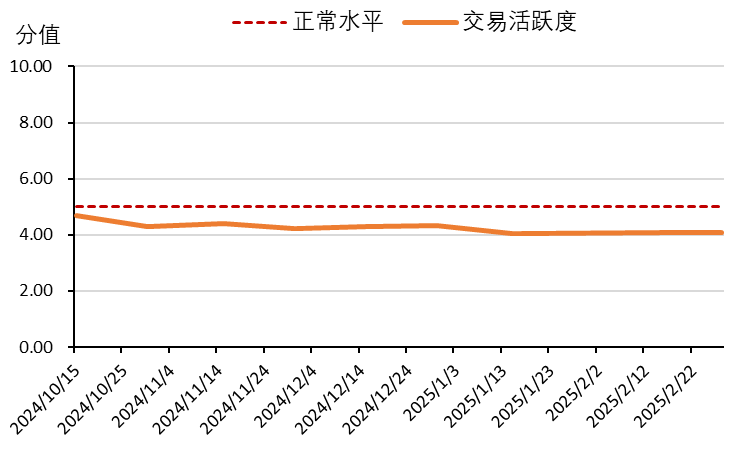 数据来源:新华财经数据库。注:活跃度指数中,0代表“走货很慢”“市场很冷清”,5代表“正常一般”,10代表“走货很快”“市场很活跃”。