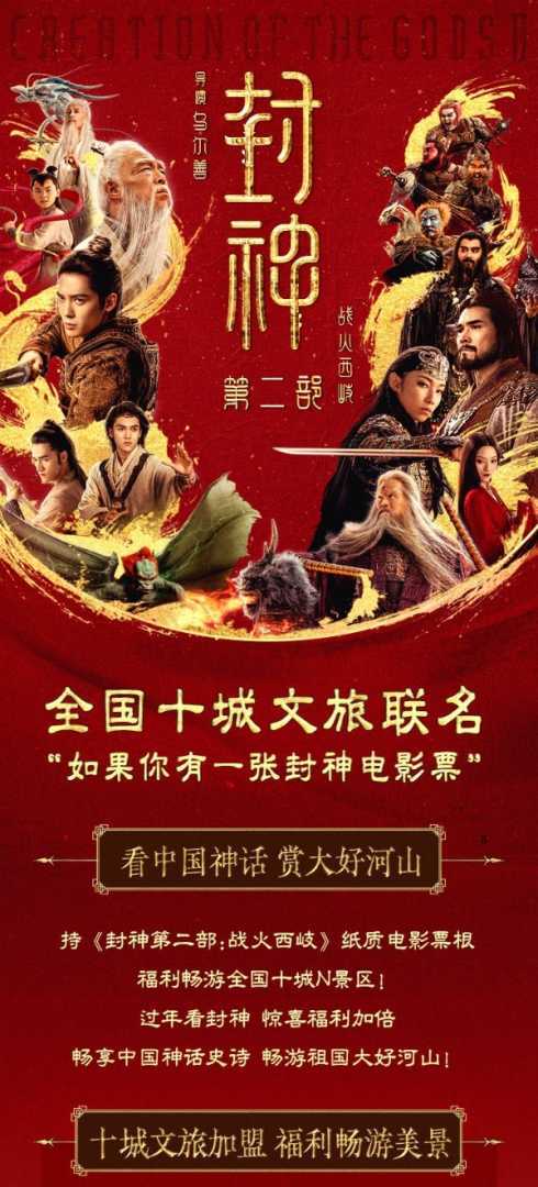 同样,《封神2》不仅推出主题影城活动,还推出与安阳市殷墟博物馆等景区的“全国十城文旅联名”,利用“票根经济”吸引游客。