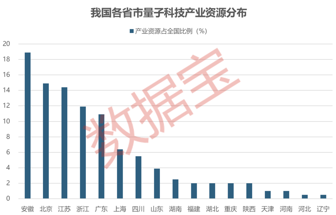 近年来,我国多地加速布局量子科技,产业发展蓬勃向上。总体来看,我国量子科技企业在区域布局上集聚效应明显,主要分布在京津冀、长三角等地。东部地区聚集了全国65.8%的产业资源,北京、江苏、浙江、广东产业资源聚集度均超过10%;中部地区安徽独占鳌头,以18.9%的产业资源聚集度居首,建成技术、产业的双高地。