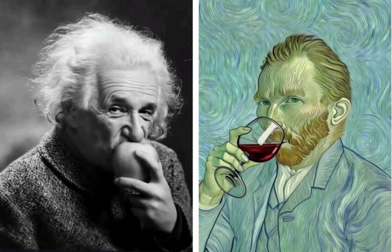腾讯展示的视频生成案例包括爱因斯坦吃苹果、梵高喝红酒等,从演示视频来看,主体运动流畅,对口型效果逼真。