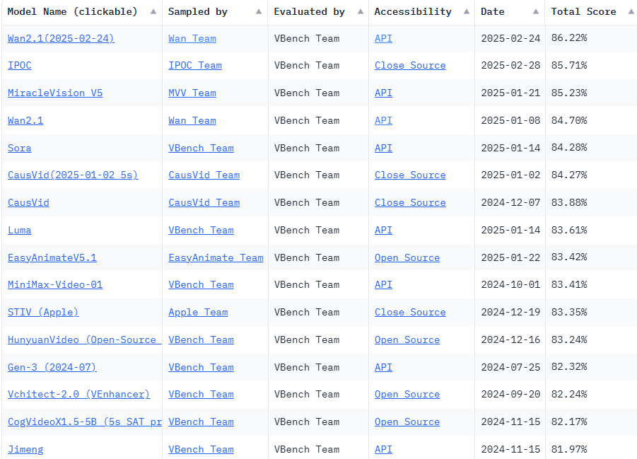 近期,大模型开源潮从文本模型扩展到视频生成领域,阿里巴巴、腾讯等大模型厂商纷纷开源视频生成模型,推动行业技术进步。在VBench视频生成模型评测榜单上,开源模型已占据重要地位。