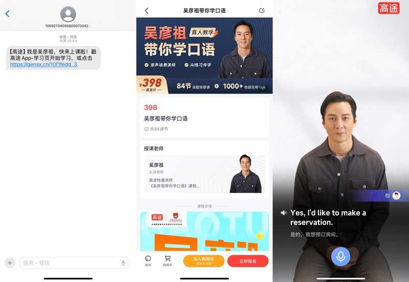 高途集团携手吴彦祖推出“吴彦祖带你学口语”课程,累计销售额已突破200万。该产品由吴彦祖亲自录制,结合中教知识点讲解,运用SR技术实现口语对练。课程标价398元,包含84节话题场景课,抖音上累计销售额高达230-475万。