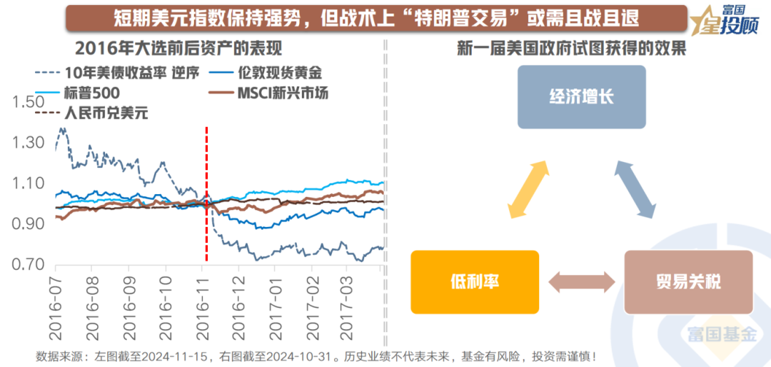回顾2016年美国大选后的资产表现,预计在美国总统2025年1月底正式就职前,市场将继续遵循“特朗普交易”的逻辑。