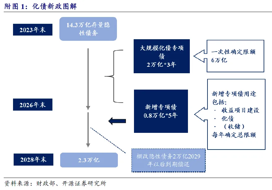 会议明确,新增地方债规模为“6+4”万亿,其中6万亿用于置换隐性债务,4万亿则用于化债。同时,考虑到棚改相关隐债展期,至2028年底,地方需消化的隐性债务将再减少2万亿元,合计达12万亿元。然而,市场对此存在分歧,一方面,地产、消费相关增量政策未直接提及;另一方面,化债本质是否为存量调整也引发讨论。