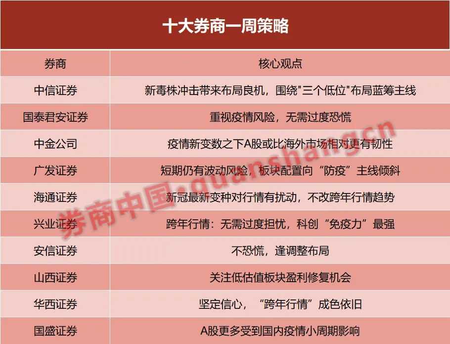 华西证券坚定信心,认为“跨年行情”成色依旧。A股微观流动性充裕,估值合理,公共卫生系统应对及时,新病毒变异株对国内影响小于国外。配置上建议以成长为主,兼顾低估值,关注医药板块行情。