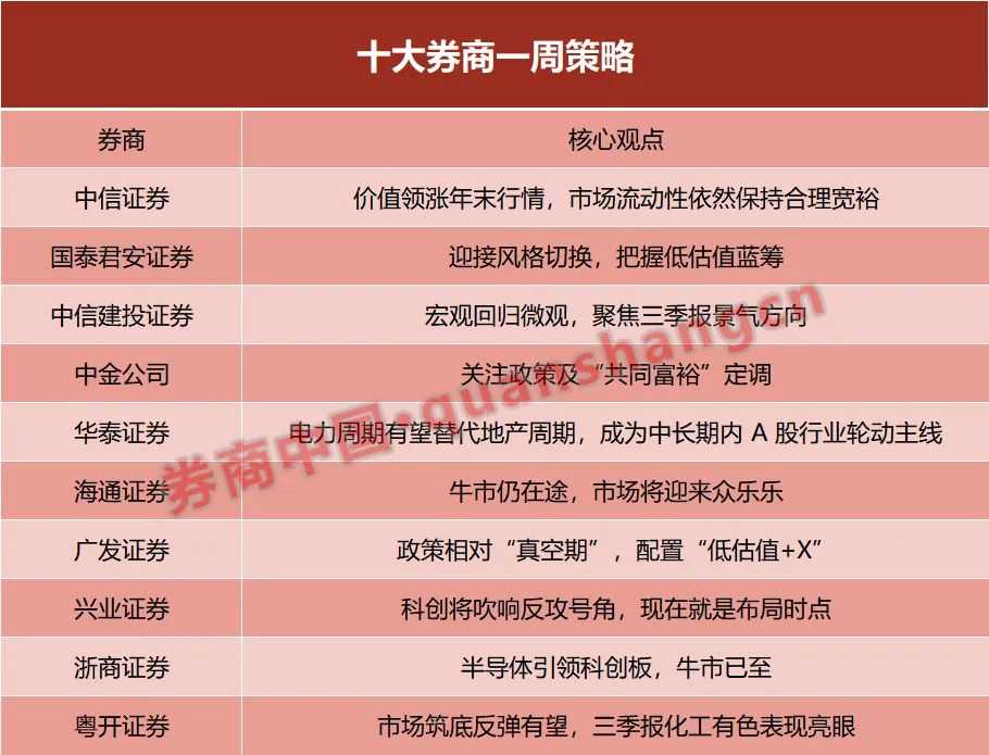 中信证券:预计低位价值板块将领涨年末行情,市场流动性依然宽裕。政策缓解经济焦虑,投资者共识提升。四季度经济运行将边际改善,通胀压力逐步缓解,机构资金净流入明显,市场流动性保持合理宽裕。配置上,建议围绕基本面预期低位且前期估值修正充分的行业展开,重点关注中游制造、消费、医药及科技板块。