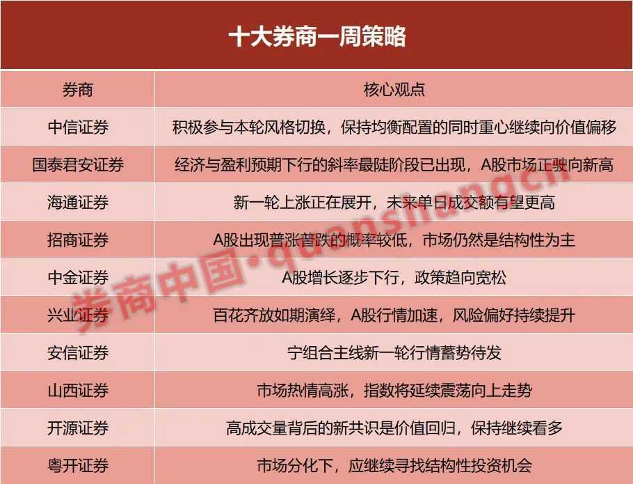 十大券商策略:A股市场正驶向新高,宁组合主线蓄势待发