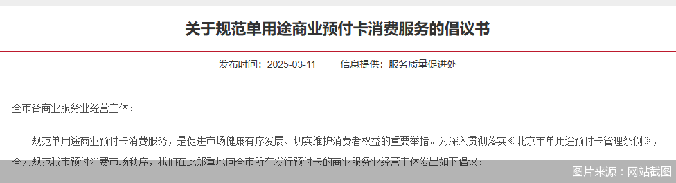 北京市商务局发布预付卡消费服务倡议书,助力市场健康发展