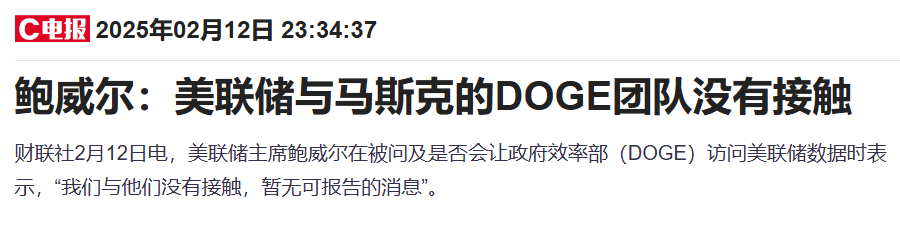 但美联储主席鲍威尔在听证会上表示,与DOGE无接触。财政部则警告,马斯克的成本削减可能影响支付操作,带来严重后果,包括政府违约或影响社会保障支付。