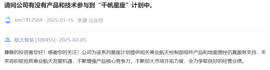 航天智装为“千帆星座”系列星座计划提供相关商业航天控制部组件产品和地面测控仿真服务。