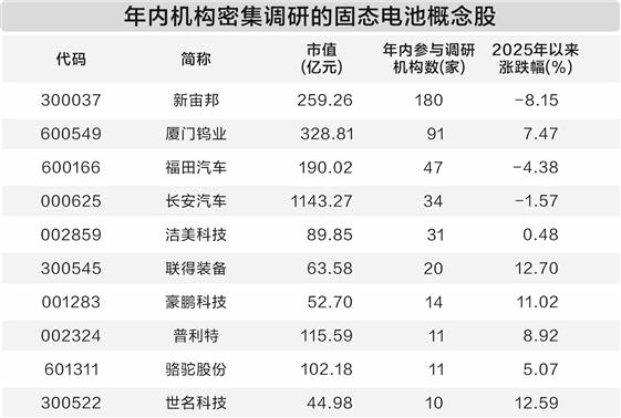 冠盛股份、逸飞激光、长城汽车等相关公司股价涨幅显著。华丰股份、武汉蓝电等公司与科研机构合作研发新型储能电池,股价涨幅均超过80%。新宙邦、厦门钨业等公司在固态电解质领域投入多年,产品稳定可靠。