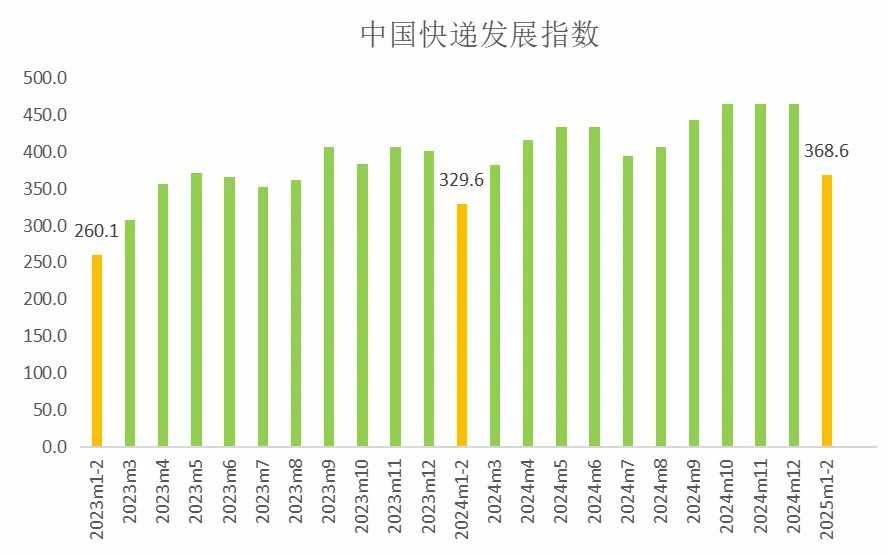 图1 2023年1-2月-2025年1-2月中国快递发展指数