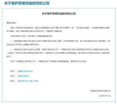 3月15日国际消费者权益日到来之际,南航出台新规,以维护消费者权益。3月14日晚,南航发布公告称,公司收到旅客反馈,第三方购票渠道出现“机票价格与行程单不一致”、“多收退改手续费”、“对免费特殊服务加收费用”等情况。为保障旅客权益,南航核实后将先行垫付差价损失,并追责涉事单位。