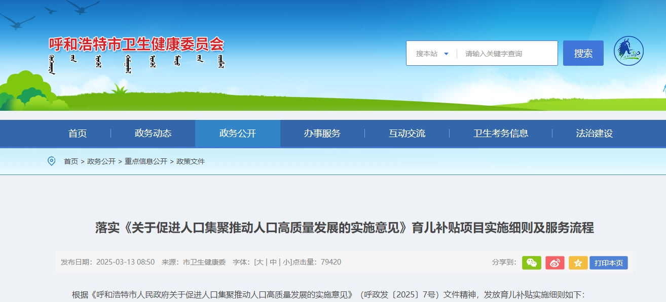 呼和浩特市卫健委发布高额育儿补贴政策,一孩补贴1万元、二孩补贴5万元、三孩补贴10万元。此举旨在鼓励生育,提高人口质量。政策效果及财政负担成为关注焦点。