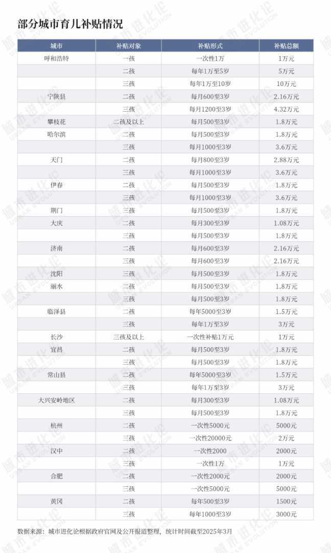 呼和浩特的育儿补贴“免申即享”,一孩补贴一次性发放;二孩5万元分5年发放;三孩10万元分10年发放。此前,攀枝花、哈尔滨、长沙等地已出台育儿补贴政策,但补贴额度相对较低。呼和浩特的高额补贴,无疑将对其他城市产生一定影响。