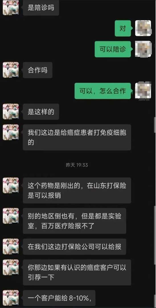 早在半年前,长沙兼职病房陪护的大学生小陈接到自称生物公司实验室工作人员“求合作”的信息,称推荐一个癌症患者前往山东接受生物免疫细胞治疗,其能得到8%到10%的提成。觉得其中暗藏猫腻的小陈向记者反映此事,揭示了医疗行业的灰色地带。