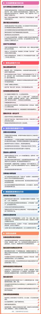 中共中央办公厅、国务院办公厅印发的《提振消费专项行动方案》于3月16日正式对外发布。该方案详细部署了八大方面共计30项重点任务,旨在全面促进消费增长。这些任务涵盖了城乡居民增收促进行动、服务消费提质惠民行动以及限制措施清理优化行动等多个方面,为消费者带来了诸多利好消息。那么,这份行动方案究竟有何亮点呢?以下图表将为您详细解读↓↓
