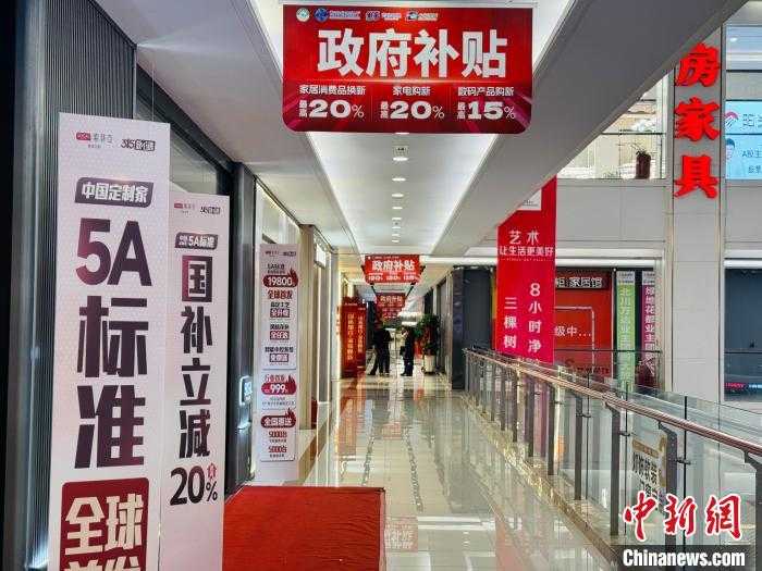 图为家装市场内悬挂着“以旧换新”字样。孙睿摄