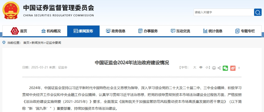 3月21日,证监会发布了2024年法治政府建设情况报告。