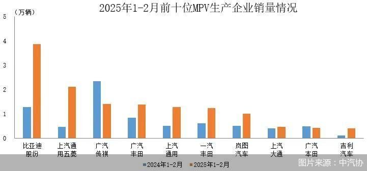 2025年前2个月,MPV市场销量排名前十的企业共售出13.6万辆,占MPV销售总量的80.8%。其中,广汽传祺和广汽本田销量下滑,其余企业增长。MPV市场成为汽车行业焦点。