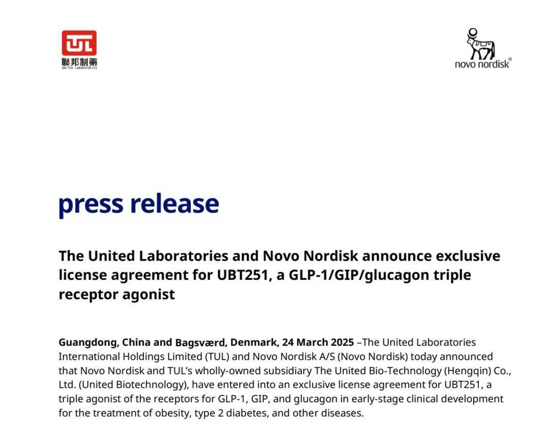 外资频购中国创新药,诺和诺德斥巨资购UBT251