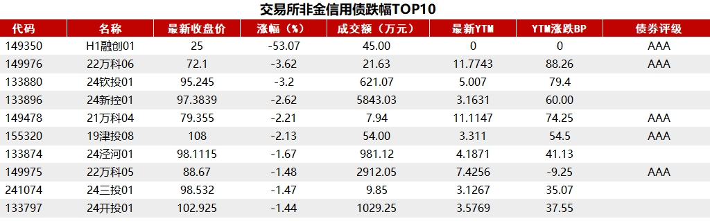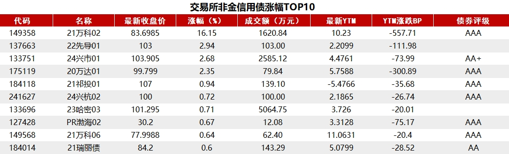 交易所债券市场收盘后,地产债涨跌互现。Choice数据显示,今日交易所市场非金信用债跌幅前五分别为H1融创01、22万科06、24钦投01、24新控01、21万科04。涨幅前五则分别为21万科02、22先导01、24兴市01、20万达01、21祁投01。