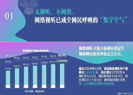 中国网络视听行业报告发布,显示截至2024年12月,我国网络视听用户规模达10.91亿人,市场总规模达1.22万亿元。短视频用户领跑,AI工具使用占比增长,知识科普和新闻类短视频受欢迎。
