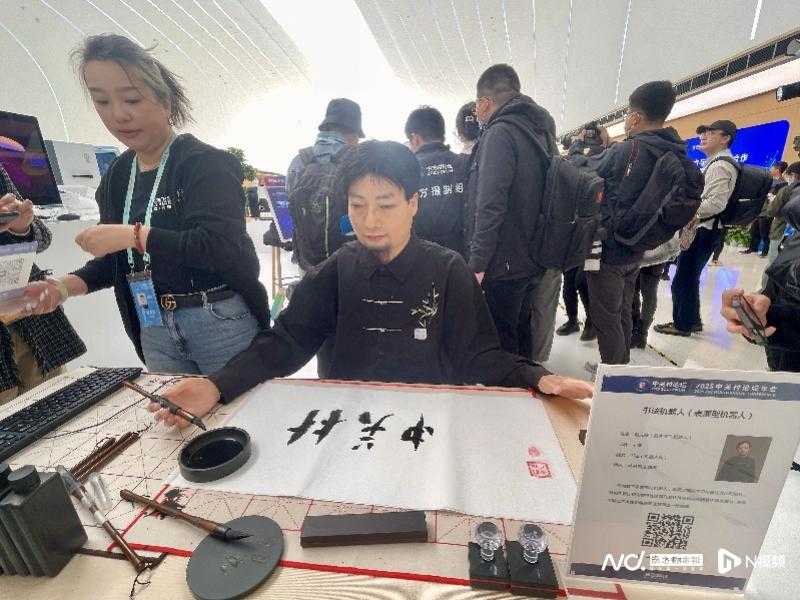 机器人带来的惊喜远不止这些。一款数字孪生机器人在现场“秀”书法,用毛笔字写下“中关村”;隔壁的仿生数字人“胡博士”有问必答,能聊AI的故事;AI下棋机器人则能陪练下象棋。此外,人形机器人还在服务区提供交流咨询、讲解导航等服务。
