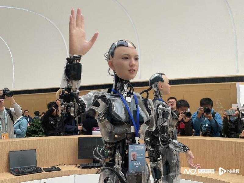 在新闻中心,机器人同样穿梭其中。一台机器人招手即停,提供递水服务;一台扫地机器人正忙碌运转;还有一只机器狗能敏锐捕捉室内温度变化,检查各处线路安全隐患。