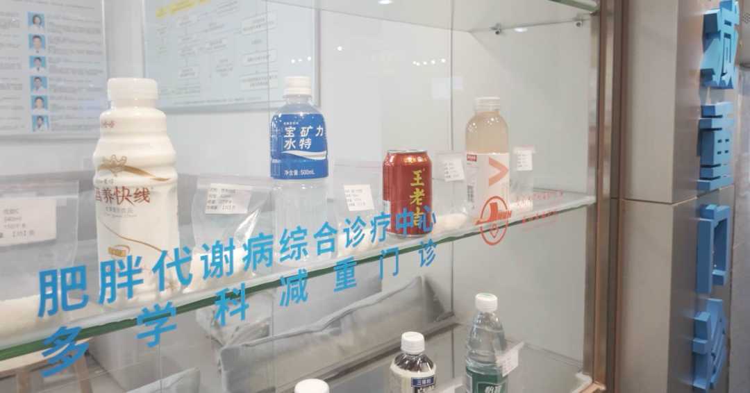 (暨南大学附属第一医院减重门诊外的陈列柜)