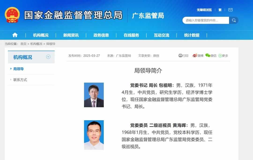 广东金融监管局官网更新显示,包祖明已就任广东金融监管局党委书记、局长。包祖明深耕金融监管超过20年,拥有丰富的金融监管经验。在深圳市金融监管局任职期间,他主持推进多项重点工作,取得积极成效。