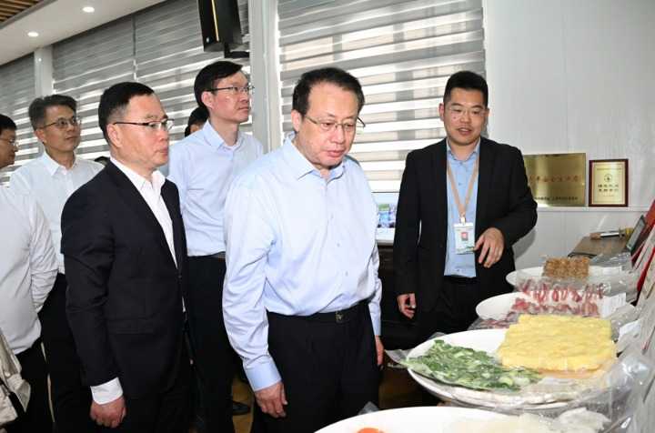 在市域外农场管理办公室苏北农场办事处,龚正一行仔细研究示意图,深入了解苏北域外农场的地理位置、土地状况及驻场单位详情。随后,市领导前往海丰米业现代农业营运中心,听取光明食品集团关于种质资源库建设及种业创新情况的汇报,并实地探访农发集团生产基地,观摩油菜生产示范田,考察无人机作业、智能灌溉等智慧农业应用实例。在正阳定食科技有限公司,龚正了解企业如何通过食品安全可追溯、可视化监控等措施保障食品安全。在长三角乡村振兴人才实训基地,市领导听取光明食品集团为长三角地区及对口协作地区开展农业产业化、品牌化、智慧化建设实训的情况介绍。光明渔业在大丰拥有6万亩水产养殖场,市领导俯瞰鱼塘全景,并亲临鱼塘边考察。产业工人身穿防水服进行捕捞作业,鱼儿欢腾跳跃,水面生机盎然。不远处,正阳禽业百万羽蛋鸡养殖场与申牛牧业万头奶牛养殖基地相邻而建,市领导考察了自动化、规模化养殖情况。龚正指出,域外农场作为上海优质主副食品的重要供应基地,需提升产业发展水平,增强农业综合生产能力,大力发展现代种业、数字农业和绿色农业,以科技创新推动现代农业产业体系的构建。要加强全产业链建设,推动农产品深加工、农业服务业和品牌农业的发展。要推广光明标准和模式,开展实践性培训,培养更多新型农业人才,助力更多地区农业提质增效,实现可持续发展。