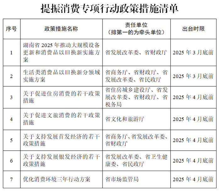 湖南省提振消费专项行动方案细节