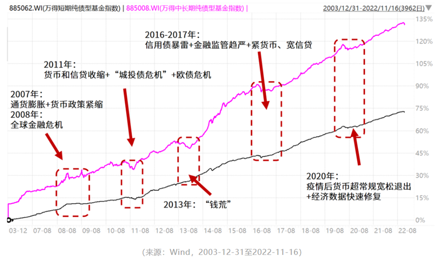 据统计,从2004年至今,中证全债指数屡创新高,实现了4.5%的年化收益率。而代表公募债券型基金整体走势的万得债券型基金指数年化收益率更是高达5.6%,这对于追求稳健的长期投资理财资金来说,确实具备较强的吸引力。