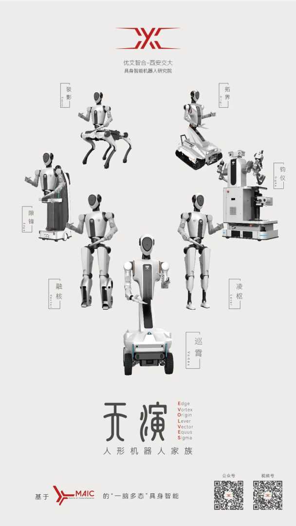 优艾智合与西安交通大学联合创立的具身智能机器人研究院公布了人形机器人矩阵,包括7款产品,涵盖多种形态。其中,“巡霄”轮式人形机器人已应用于半导体制造及能源行业,展现了强大的应用潜力和市场价值。