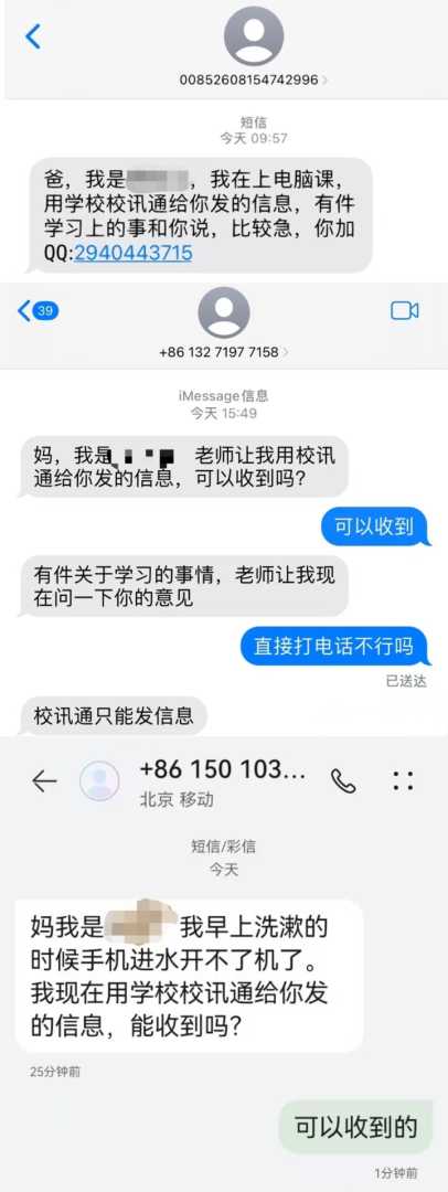 近年来,假冒“校讯通”诈骗屡屡出现,多地公安也曾相继辟谣。鉴于此,家长收到自称是自己孩子的陌生号码短信,务必核实信息来源真伪,及时与学校老师、学生本人取得联系。同时,家长应保持理智,核实清楚后再做决定。苹果手机用户可在iMessage设置中,关闭“接收陌生人信息”选项,避免收到涉诈信息。日常生活中也要注意保护隐私,谨防诈骗。