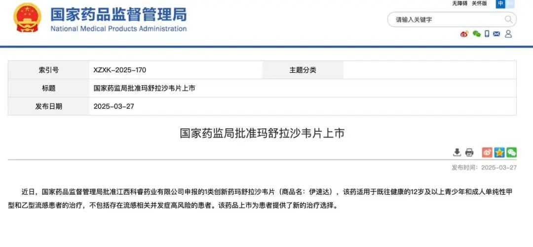 国产抗流感新药玛舒拉沙韦上市,有望打破进口药垄断
