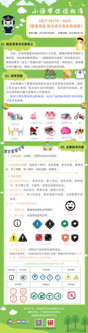 《婴童用品标识设计及应用指南》国家标准提出了“三级图形标识体系”,通过标志性图形、信息引导符和具体内容符的分层设计,能够直观展示产品的适用年龄、材质成分及使用警示,有效减少了误用的风险。