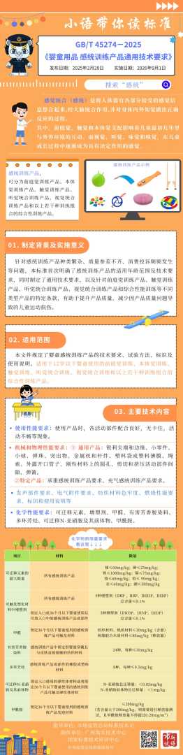 《婴童用品感统训练产品通用技术要求》国家标准首次划定了感统训练产品的适用年龄范围,并明确了发声部件、电气附件的抗压、阻燃等安全要求,这将有效降低儿童在运动过程中的损伤风险。