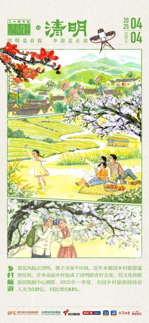 今日清明(2025年4月4日),作为春节后首个小长假,清明假期民众出游热情高涨。乡村旅游持续蓬勃发展,美丽乡村成为清明踏青热门选择。乡村旅游的热门玩法和消费亮点是什么?本期《二十四节气话财经》为您揭晓。