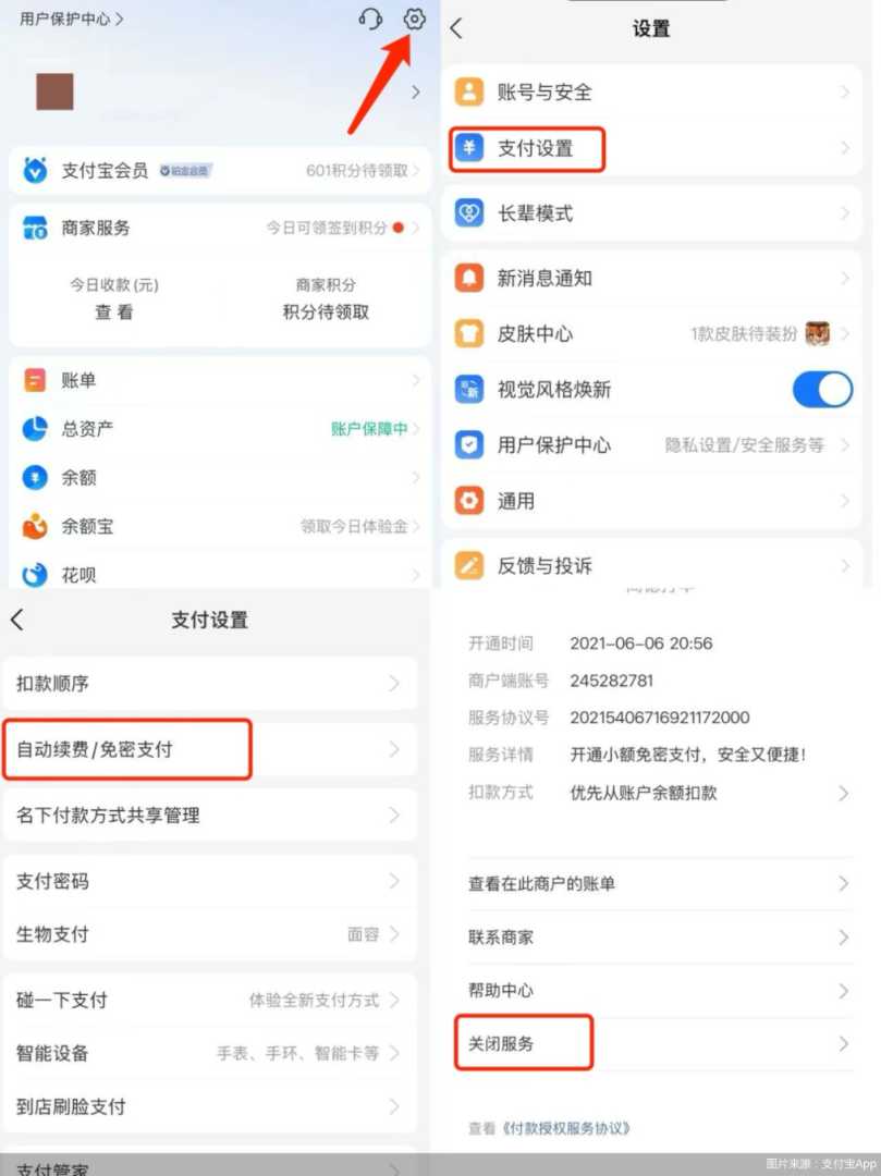 对于消费者如何查询和关闭免密支付,北京商报记者进行了实测。用户可通过提供免密支付服务的平台方进行操作。以支付宝和微信为例,用户可在App内找到相关设置并关闭免密支付服务。