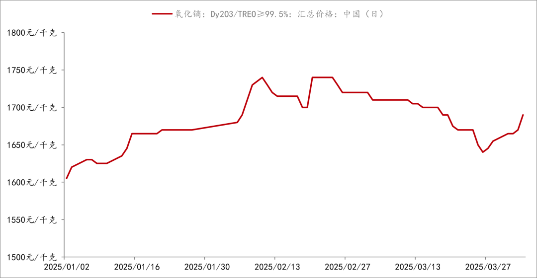 上海钢联数据显示,2025年以来氧化镝价格在1605至1740元/千克间震荡,氧化钆、氧化钇、氧化铽价格亦小幅上行。
