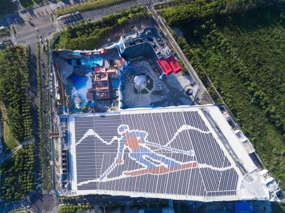 (上海耀雪冰雪世界屋顶的太阳能光伏发电系统。受访者/图)