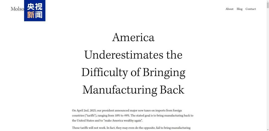 特朗普政府的关税大棒,最终砸痛的只会是美国自己的脚。近日,美国一线企业主莫尔森·哈特结合自身经验,发布了题为《美国低估了制造业回流的难度》的文章,控诉特朗普的关税政策,并用多个论据,揭穿了“关税能救‘美国制造’”的致命幻觉。
