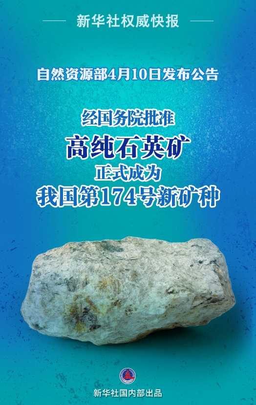 自然资源部4月10日发布公告,经国务院批准,高纯石英矿成为我国第174号新矿种,此举或将影响半导体、光伏等产业链。